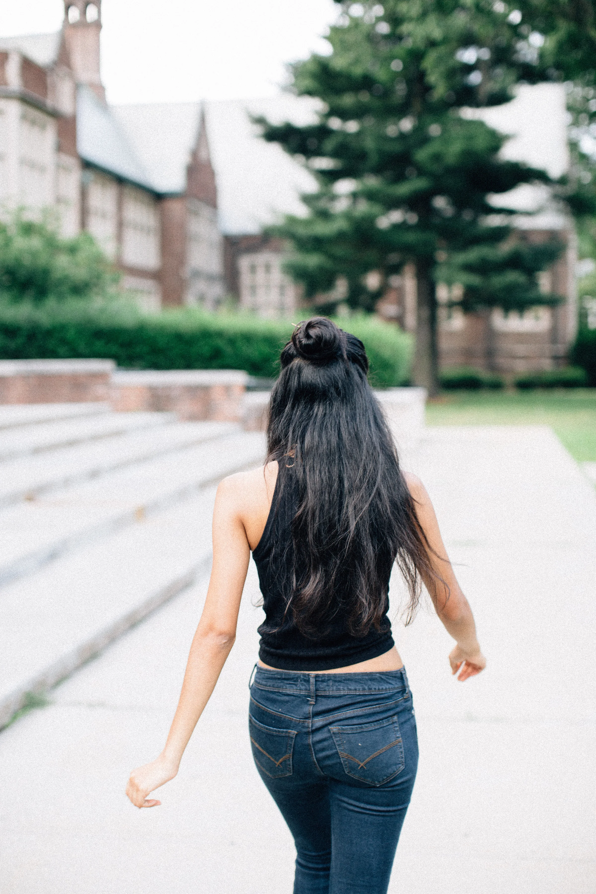 I have been so happy enjoying the return of so many 90's trends this past year. Lately I am OBSESSED with chokers. (haha, along with everyone else) As you can see I am wearing two. I wore my classic black leather choker, along with a double chain gold one. I also cannot stop wearing this ribbed knit tank. I paired it with some comfy jeans, and black lace up flats.